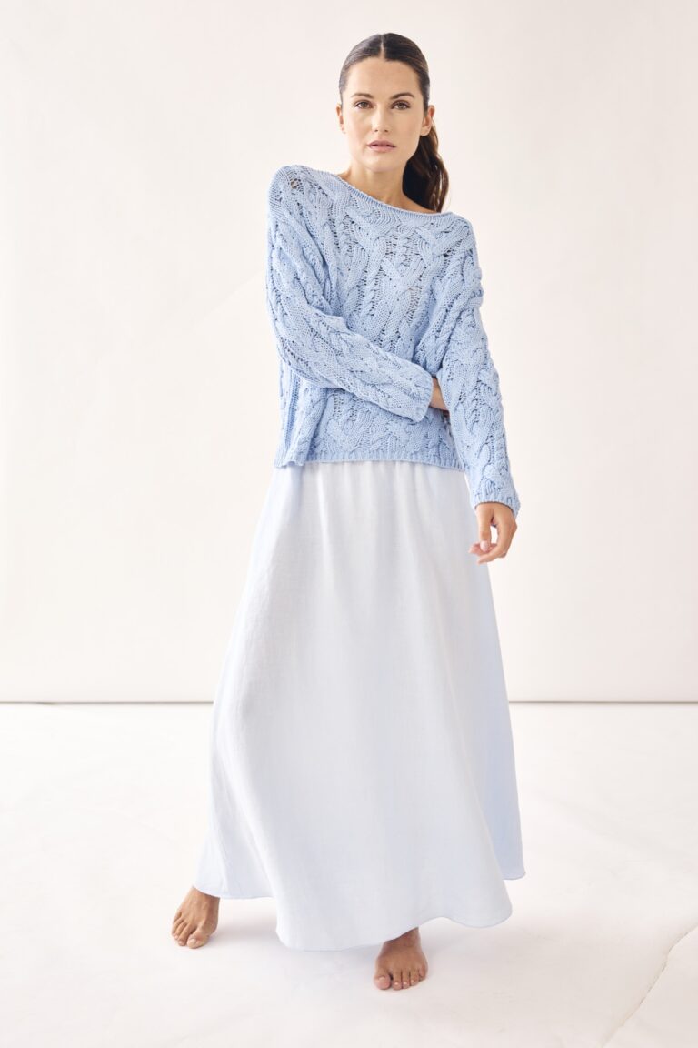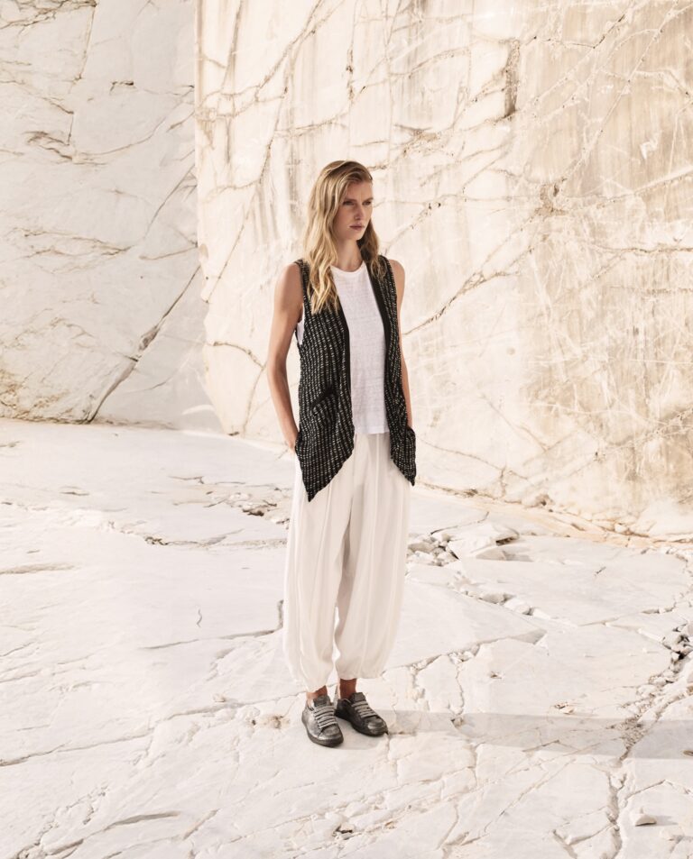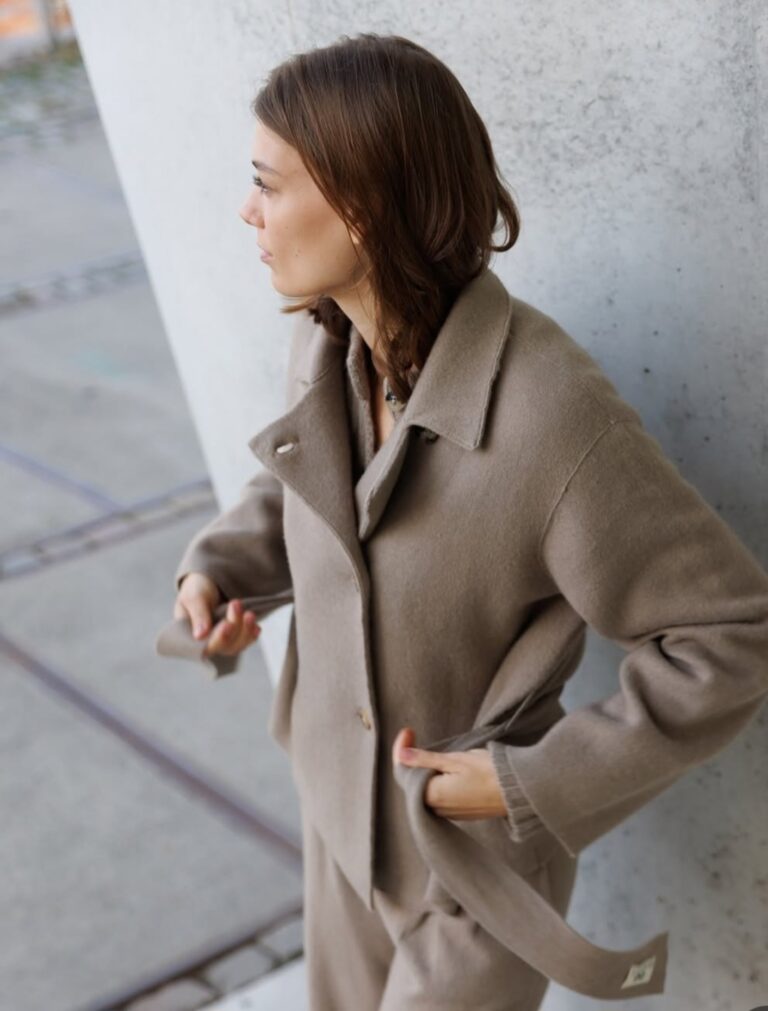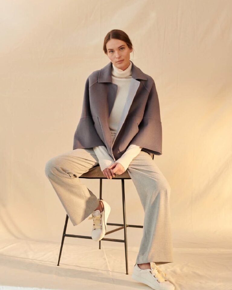 Miękkie, przytulne tkaniny, takie jak kaszmir i jedwab, zajmują centralne miejsce w kolekcjach. Jakość materiału jest zawsze priorytetem, a fasony są projektowane tak, aby pasowały do różnych typów sylwetek i były stale udoskonalane w oparciu o opinie klientek.
